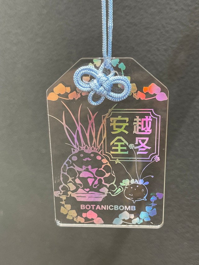 “植物に願いを込める" BOTANICBOMB 完全オリジナル植物専用お守りが登場! イラストレーターの足立真人氏による、個性豊かな珍奇植物たちの可愛いイラスト入り。 あなたの植物LIFEをそっと後押ししてくれる守り札です。 アクリルにきらめくホログラム仕様で、光の角度によって虹色に表情が変わります。 『越冬安全』 カリバナス フーケリー+ オトンナ カカリオイデス + BOTANICBOMB のホログラム 素材 アクリル サイズ 縦 約75mm × 横 約50mm × 厚み約3mm -あなたの植物ライフに彩りを-