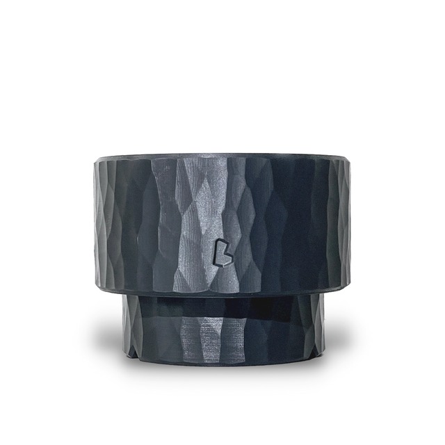 ボロノイパターンをリング状にあしらったオリジナルデザインを、3Dプリンターで出力した樹脂製の植木鉢。 Sサイズ 微細なメタリックブラックの塗料で荒々しく仕上げると同時に、ゴールドの特殊加工をわずかに施してあります。 力強さの中に、繊細さが同居している作品です。 鉢底にオリジナルロゴ入り。 Size : Φ80mm x H66mm (上部内径約64mm) 深さ : 55mm 底穴あり 受皿なし 3Dプリンターの材料の特性上、 60度を超える場所でのご利用はお控えください。 一つ一つ手作業で仕上げているため、ゴールドの配分など 個体差があります。植物同様、鉢の個性と捉えていただきますと嬉しいです。