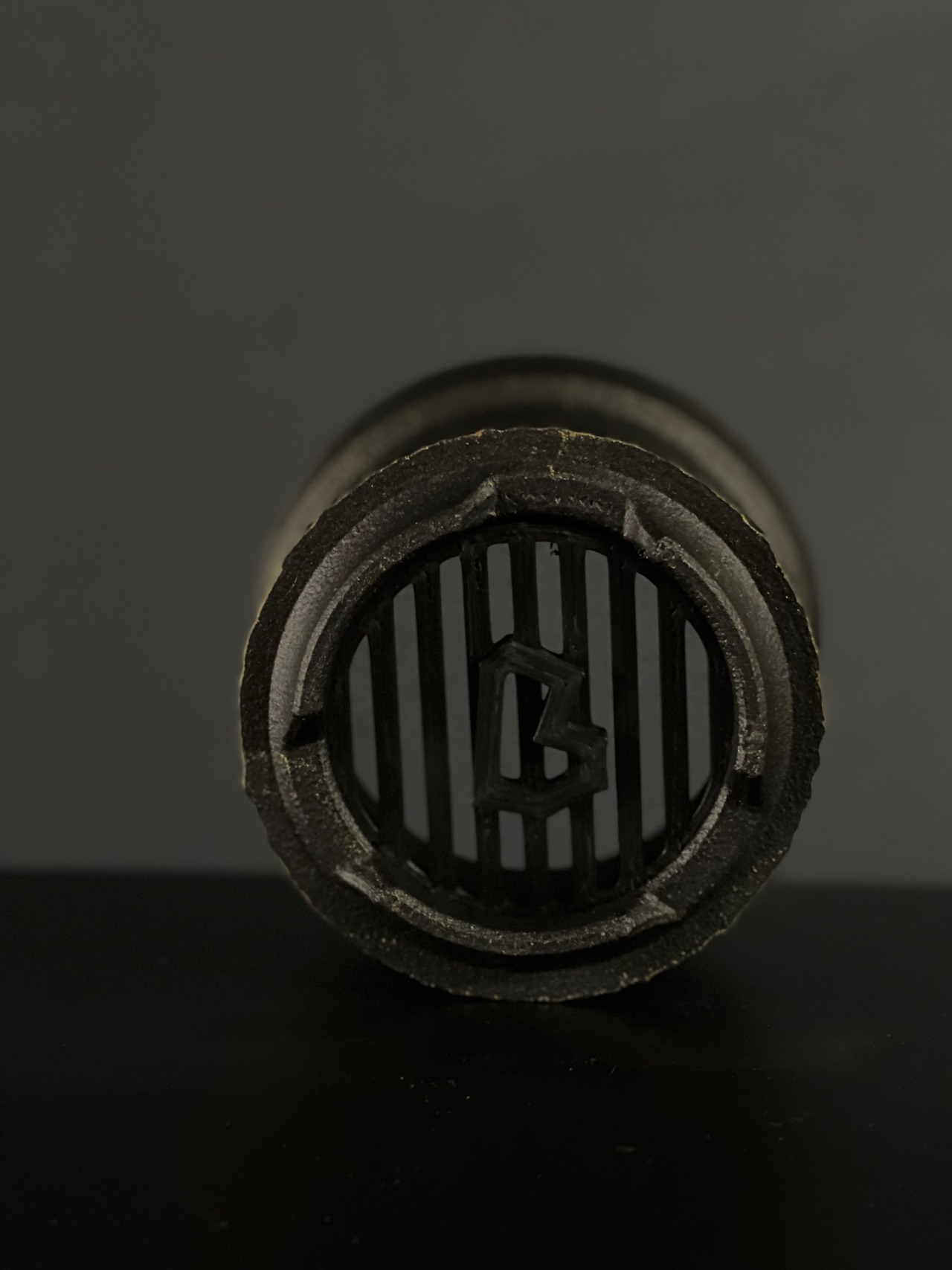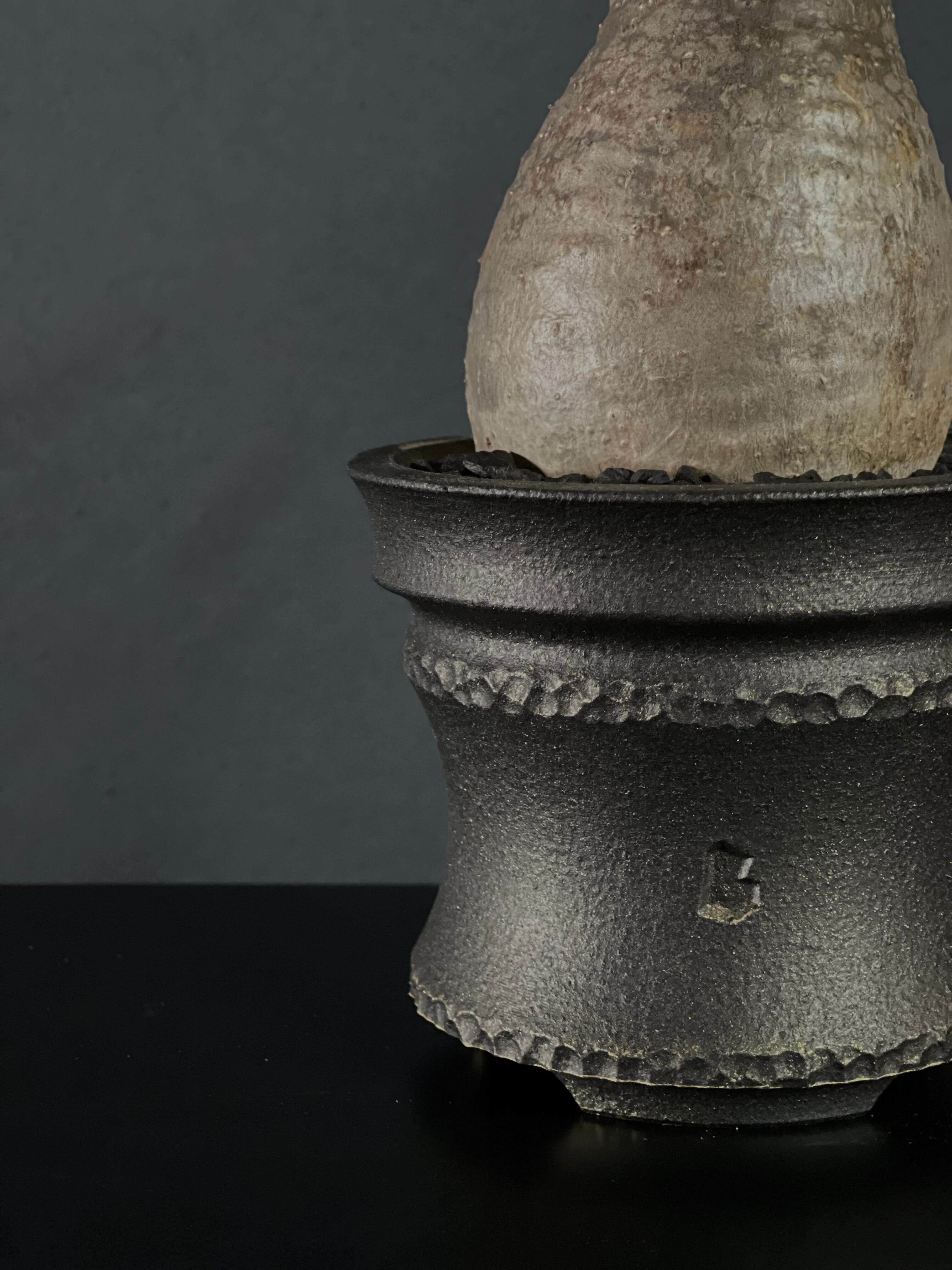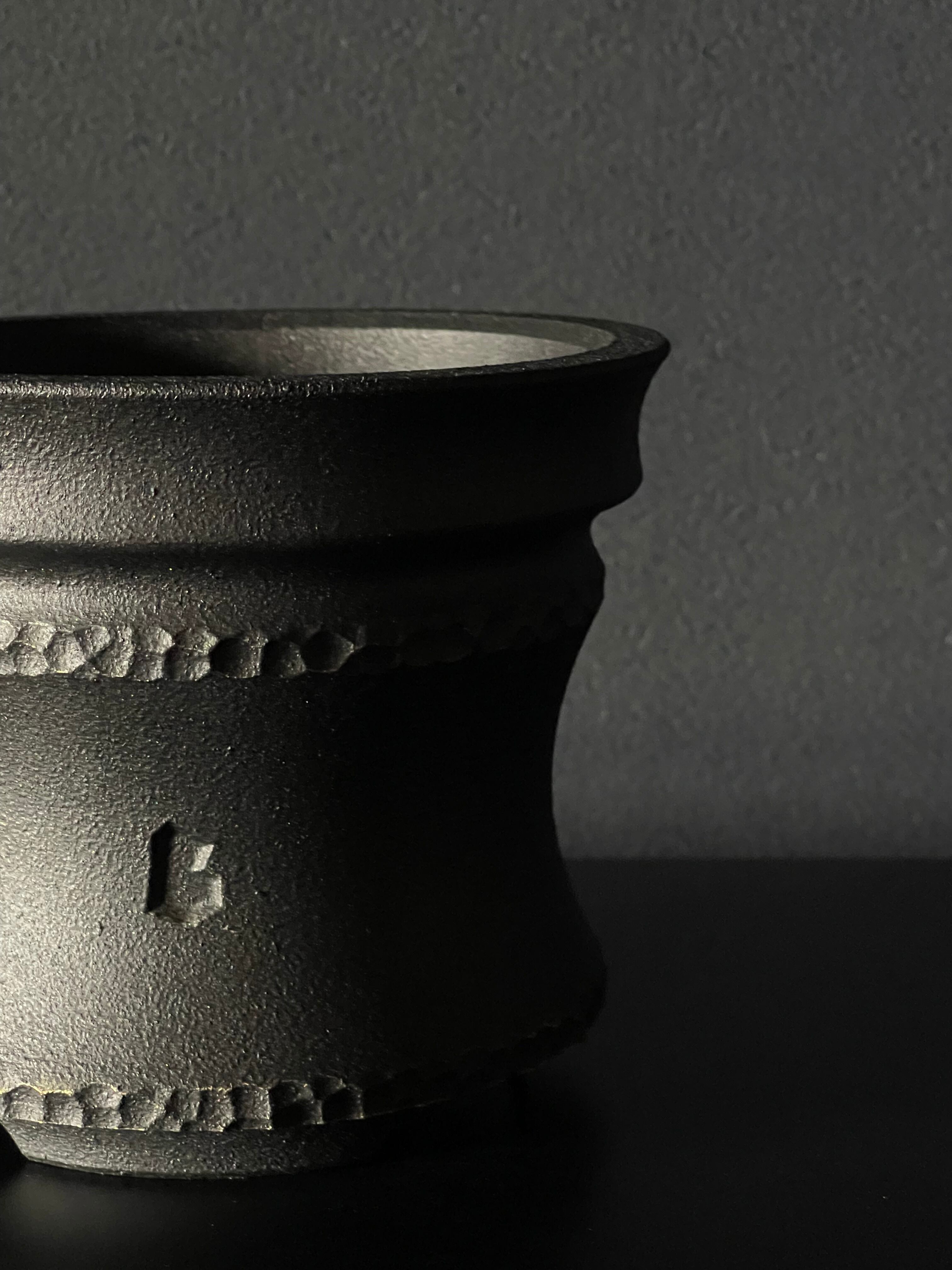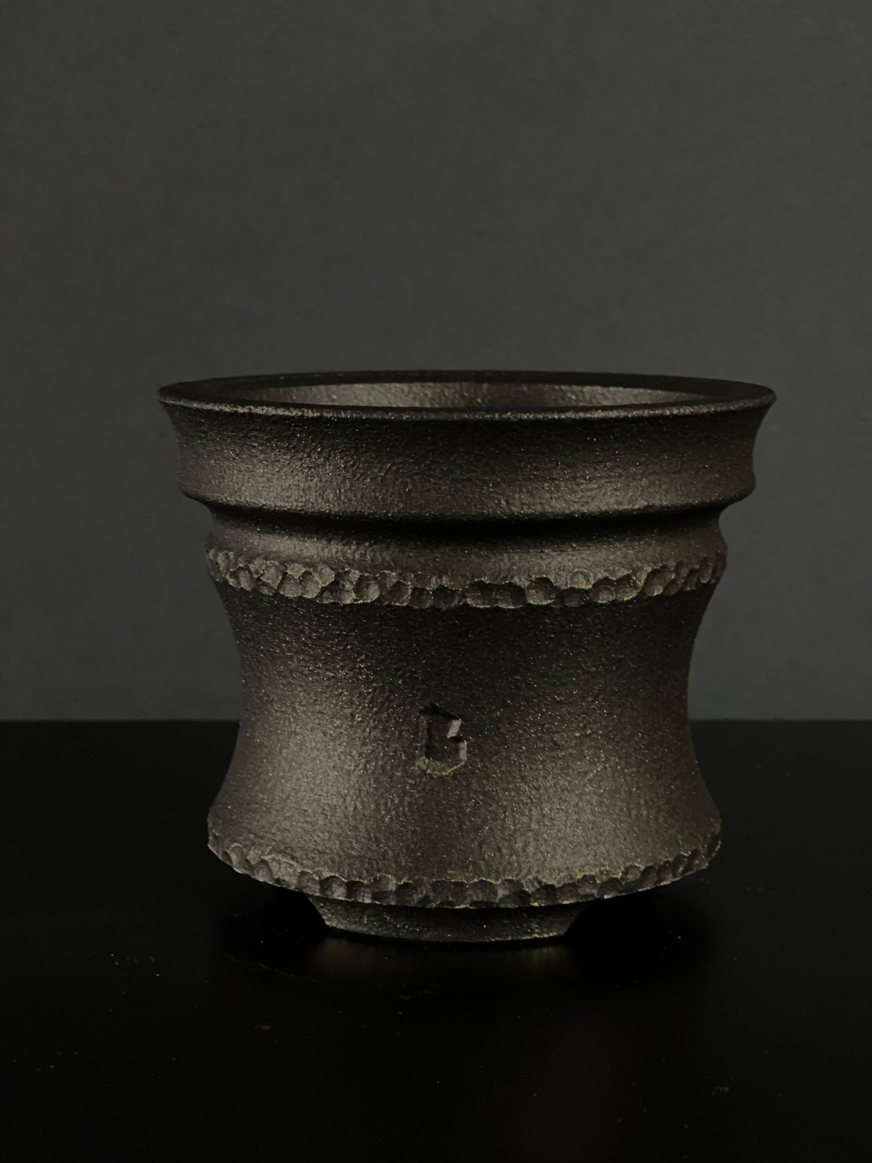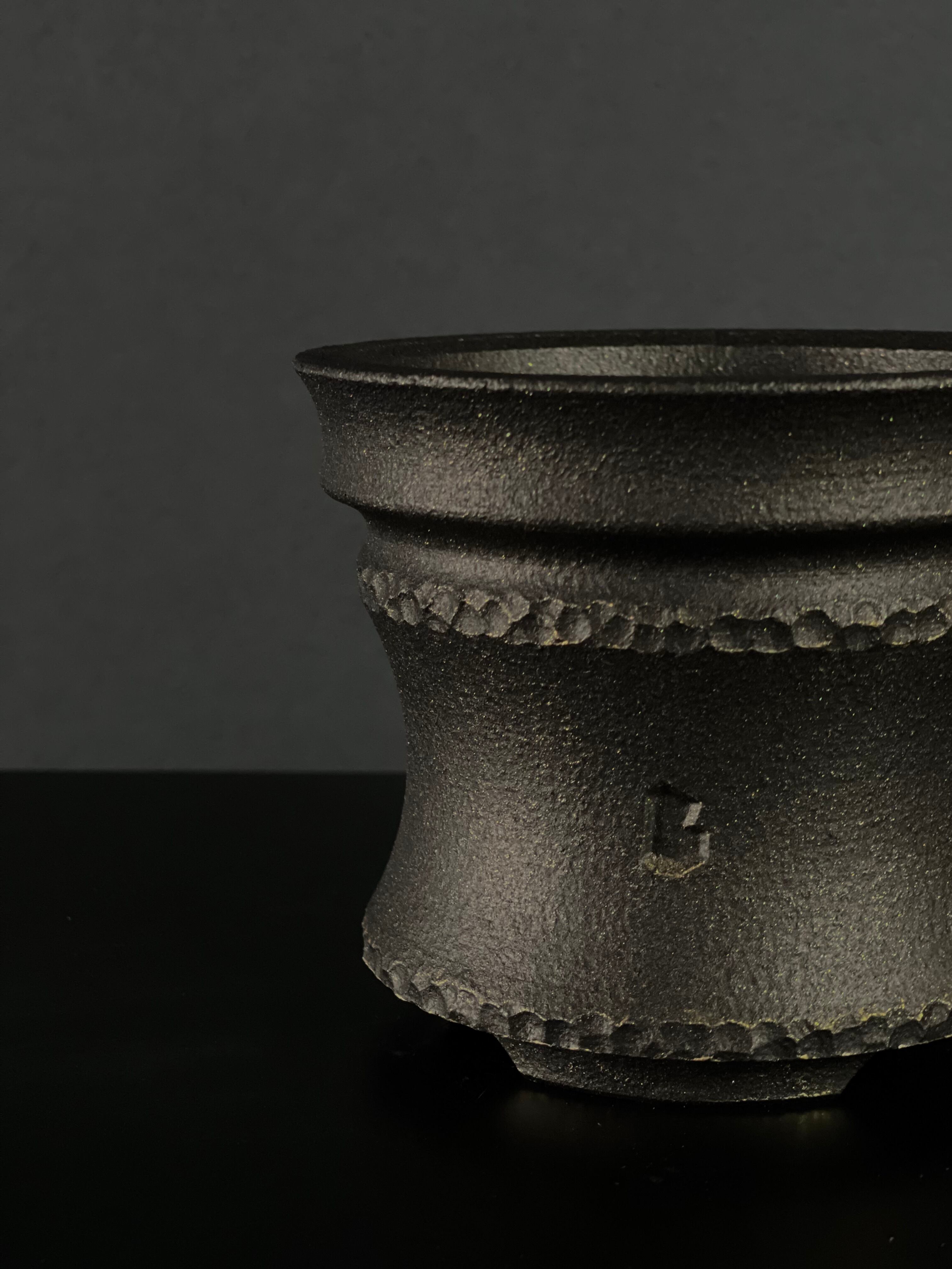 微細なメタリックブラックの塗料で荒々しく仕上げると同時に、ゴールドの特殊加工をわずかに施してあります。