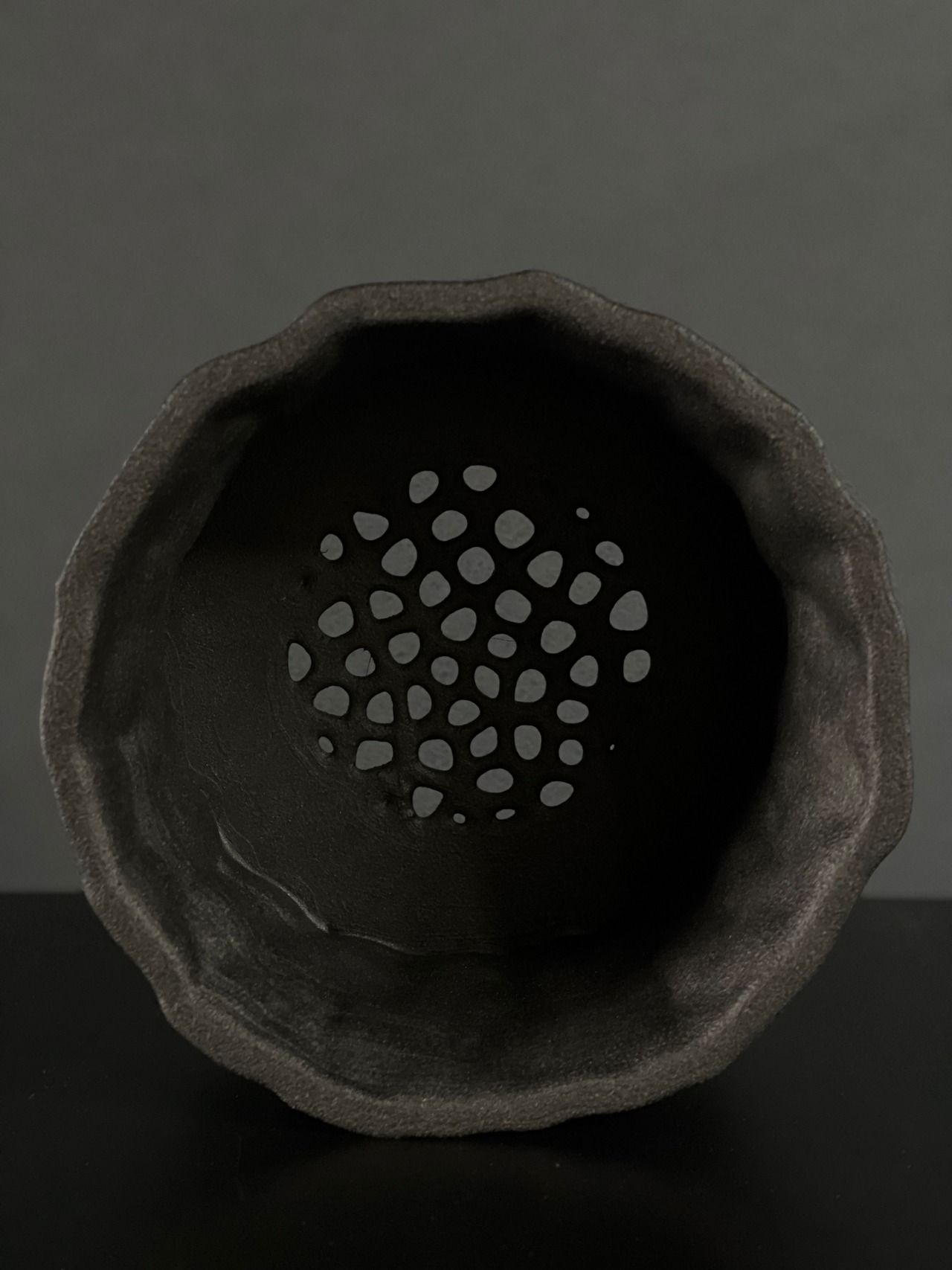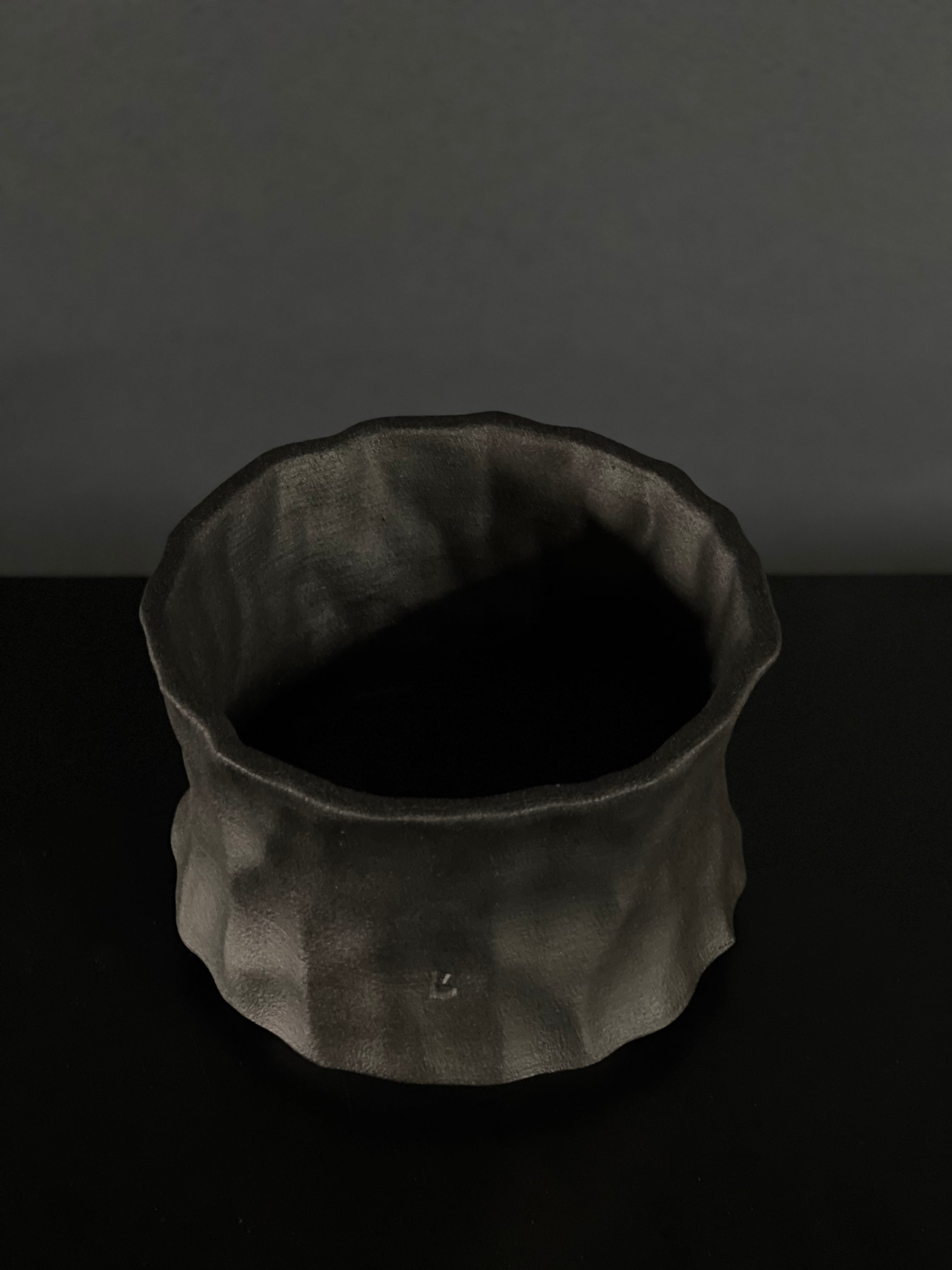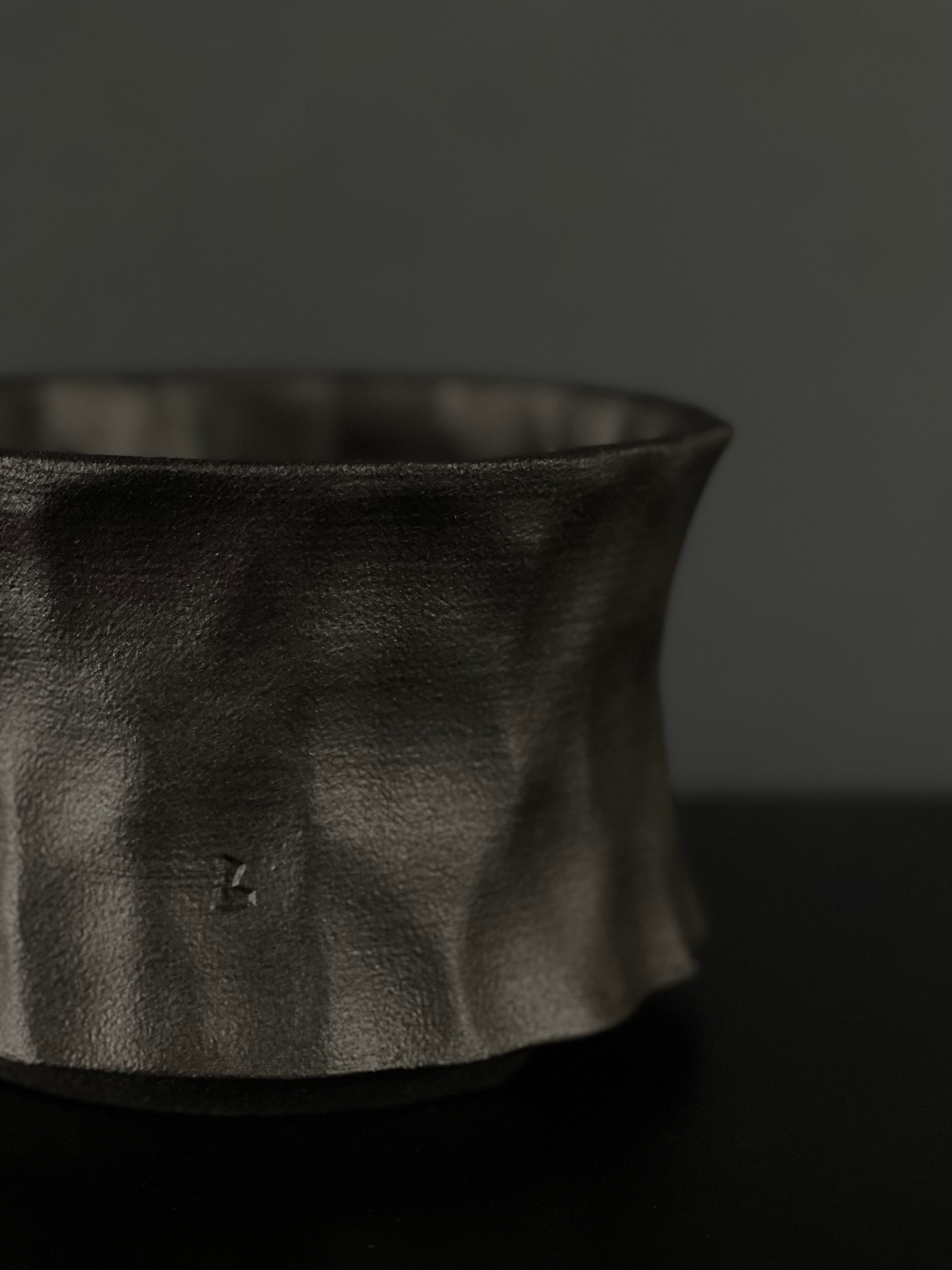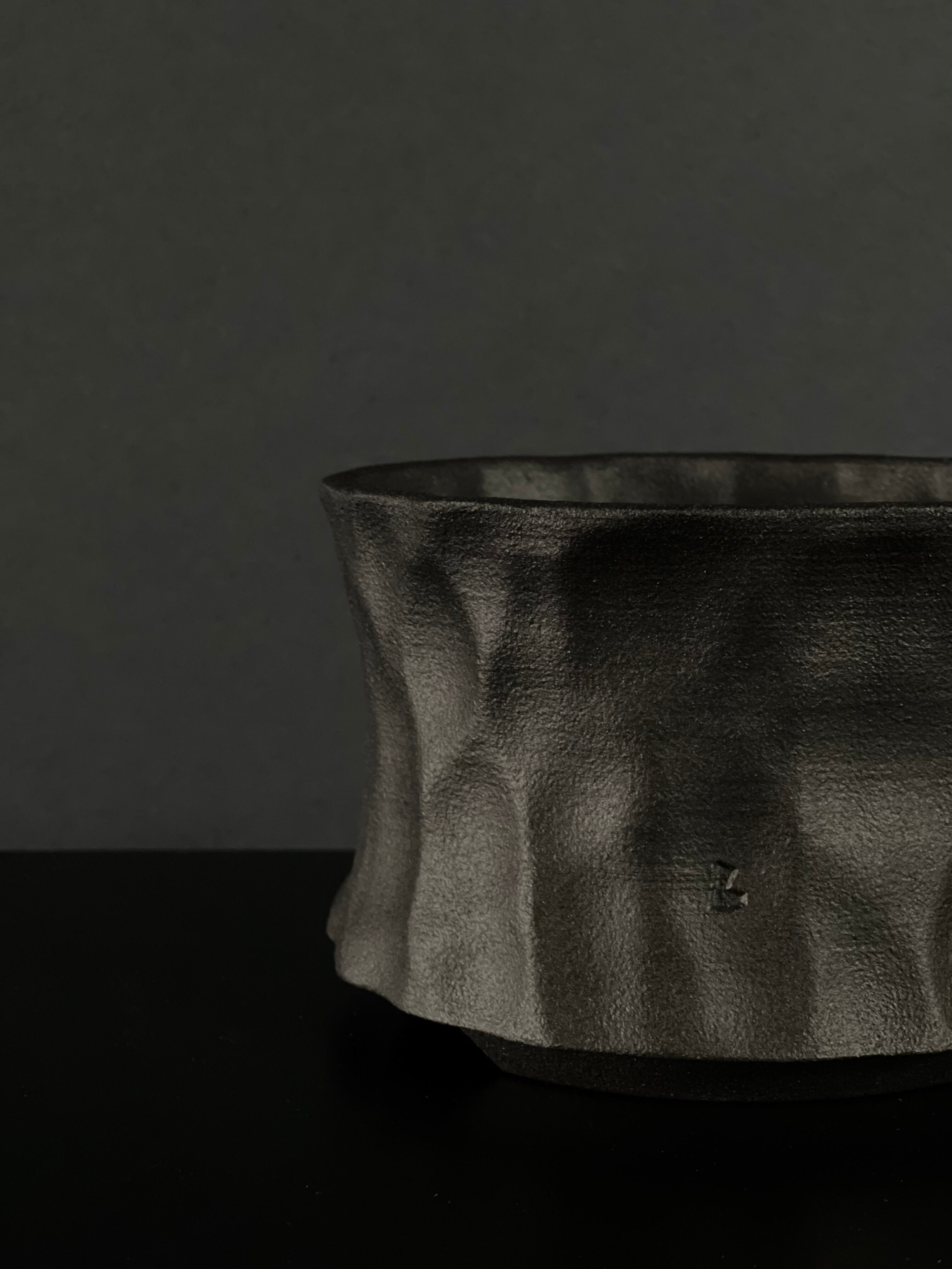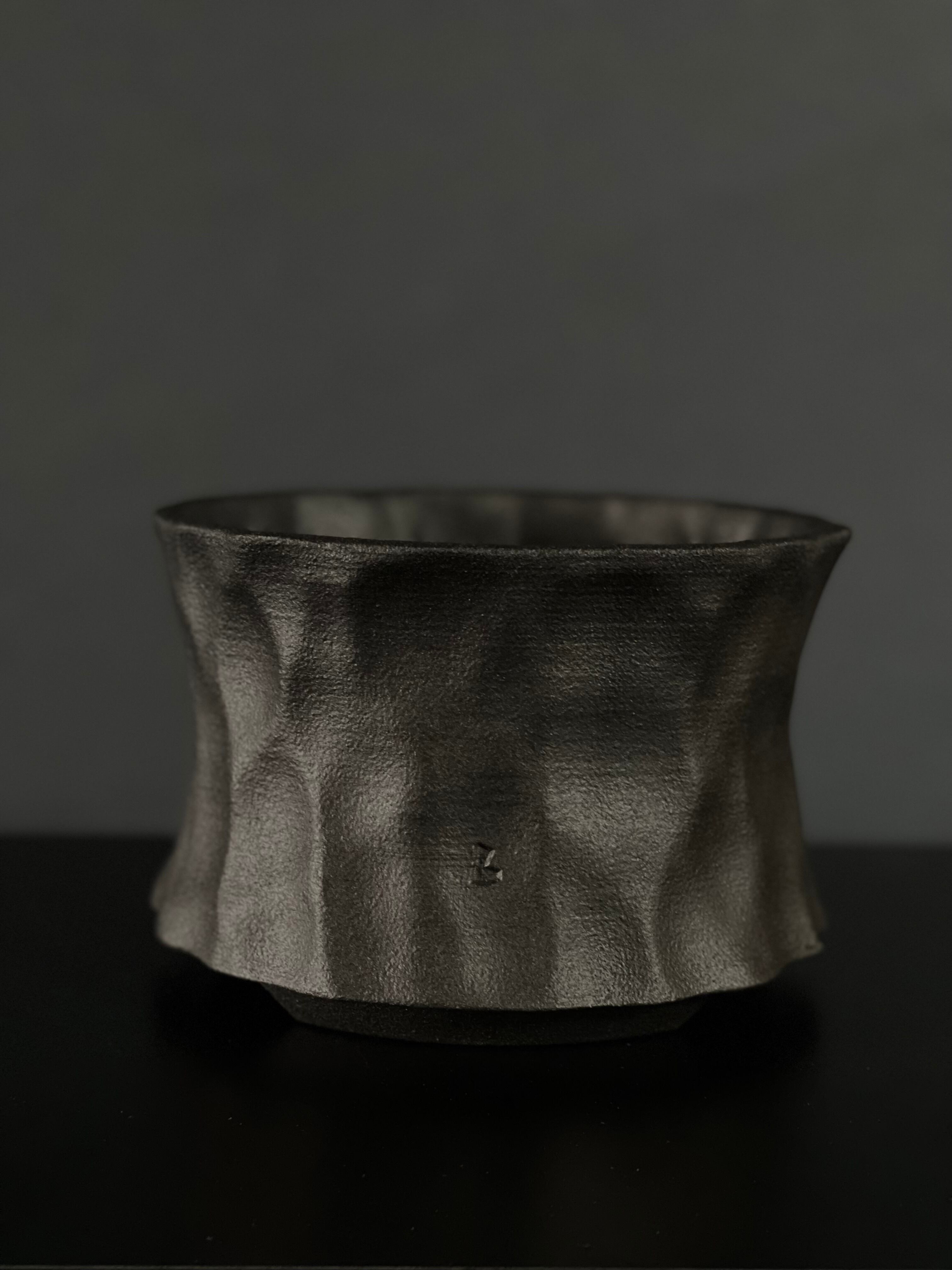 深みのあるブラックが特徴で、水面を思わせる波紋のような模様が目を引きます。