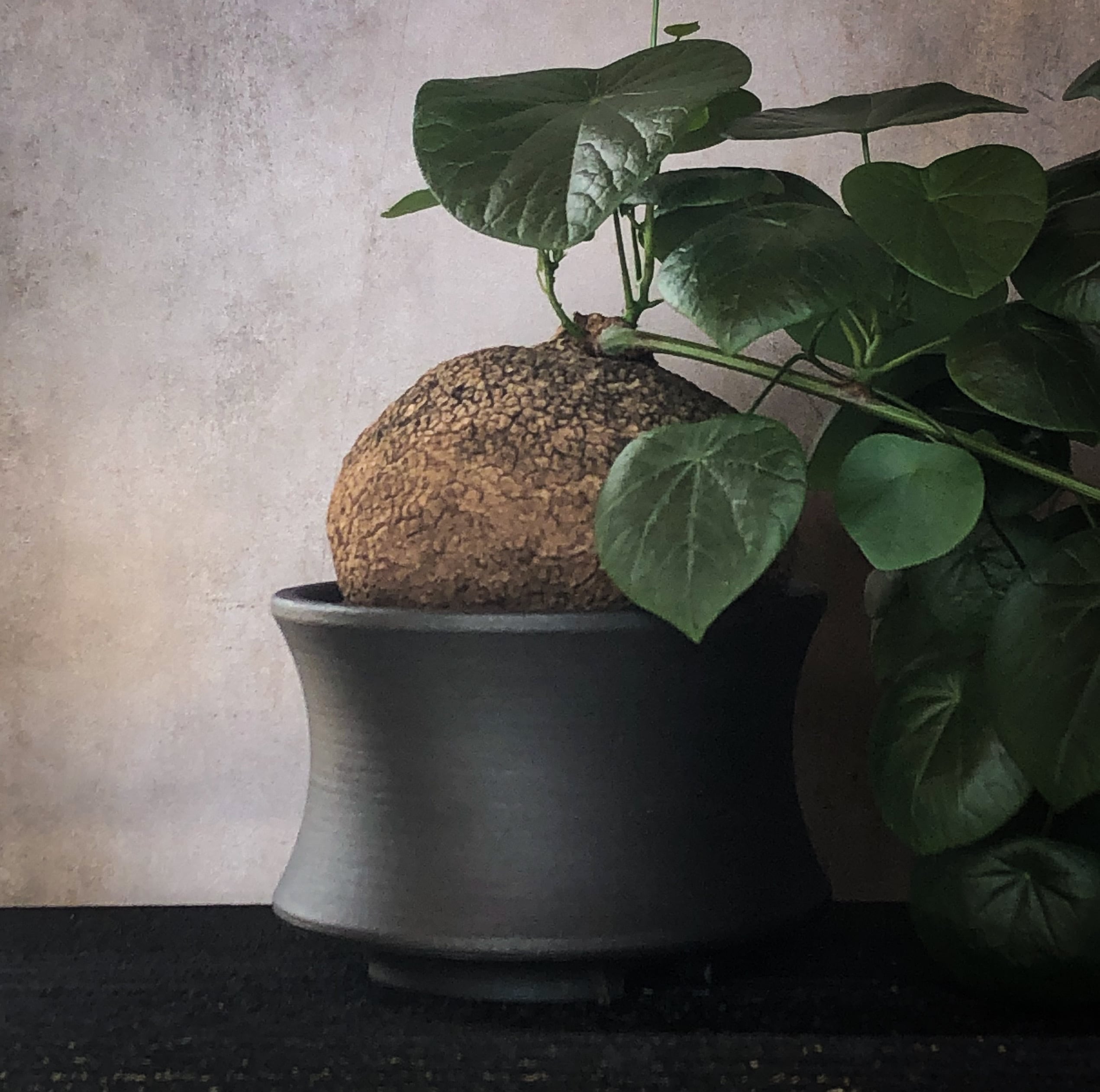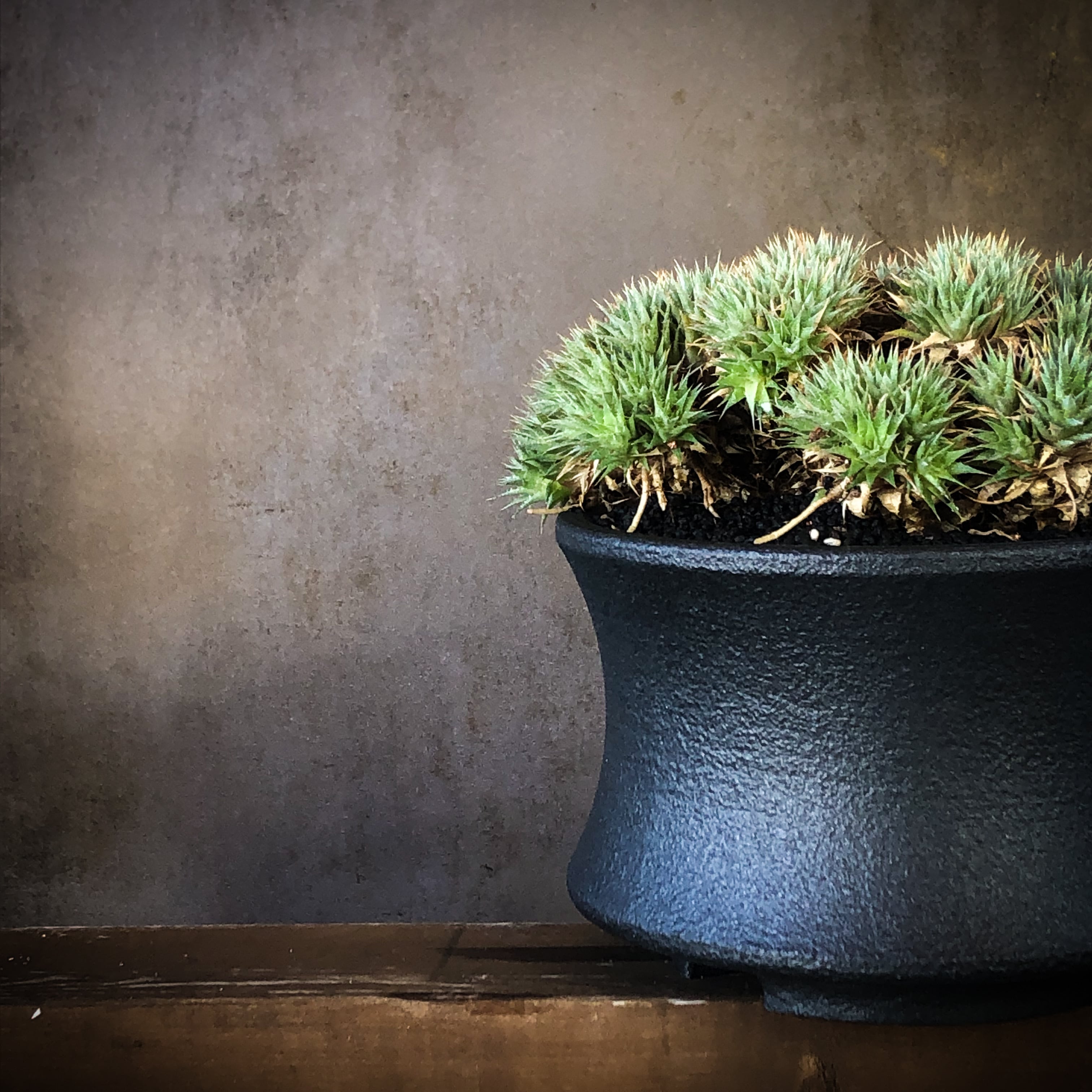 恐竜の脊椎からインスピレーションを受けてデザインされたカタチを3Dプリンターで出力した樹脂製の植木鉢。